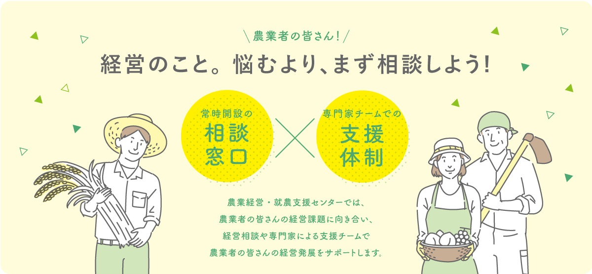 岡山県農業経営・就農支援センターは、農業経営の法人化、規模拡大、6次産業化、販路拡大、会計・経理、労務管理、経営継承など、農業者の皆さんの多様な課題に対応するため、相談窓口での専門家による経営相談や、専門家の派遣による経営診断、経営戦略策定、アドバイスなどの経営支援を関係機関と連携して行っております。